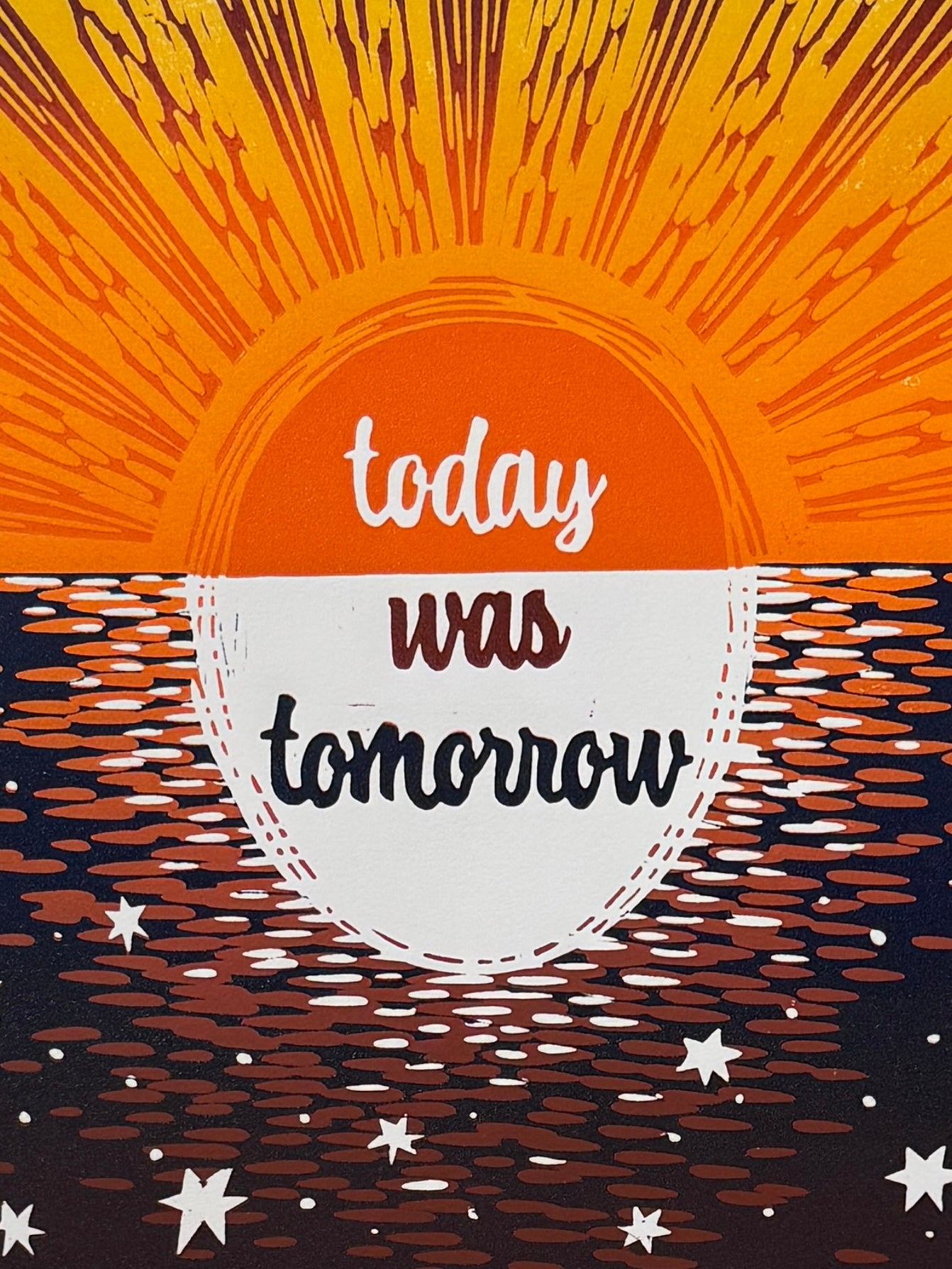 **Small special "today was tomorrow" letterpress prints will be available in the gift shop at the Freeport Art Museum during the month long exhibition or until they run out! Limited run of 50 but each is unique. Some portions will be donated to the Natural Land Institute to help heal, maintain, and protect the prairies, wetlands, and special natural spaces in the Northern Illinois area.**
