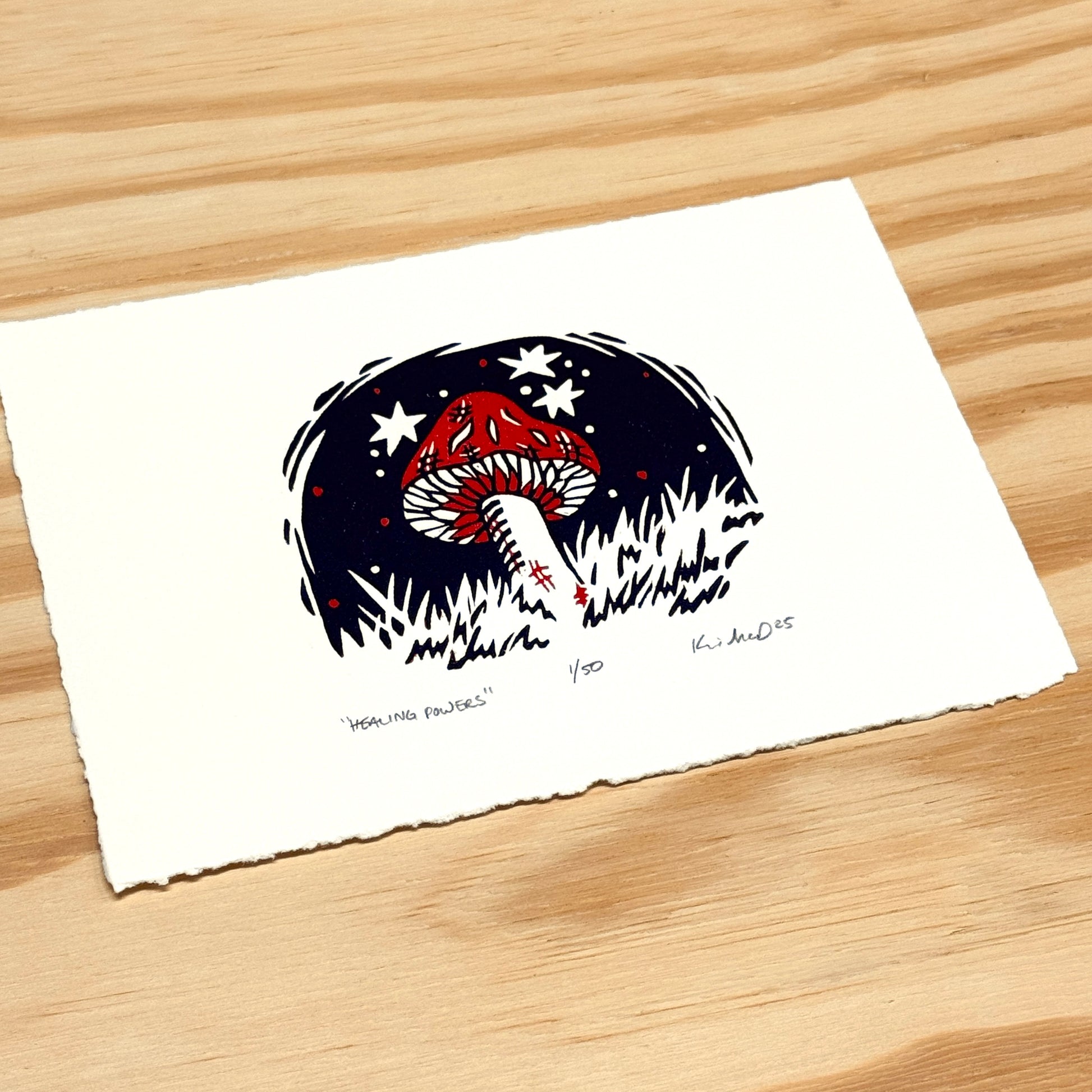 "Healing Powers" is a fun little print inspired by the magical mushrooms! Cute in their own right but also fun to hunt - so I've heard. Eating them is a challenge for me but added to drinks as a powder is as magical as I'll ever get. :)
