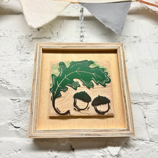 Oak & Acorn - FRAMED WOODBLOCK (6x6")