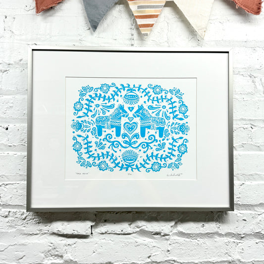 Dala Horse FRAMED WOODBLOCK and FRAMED PRINT - Collector's Item