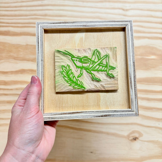 Grass Hopper - FRAMED WOODBLOCK (6x6")