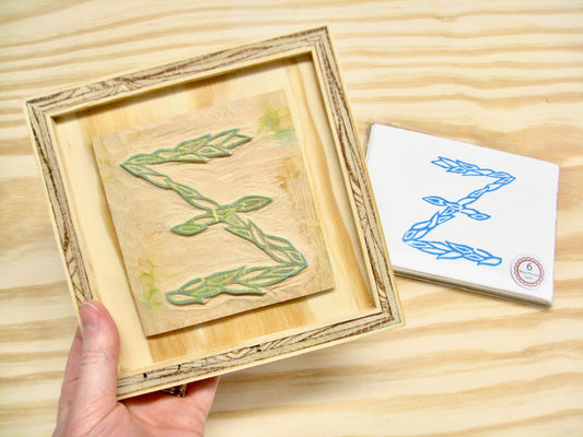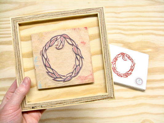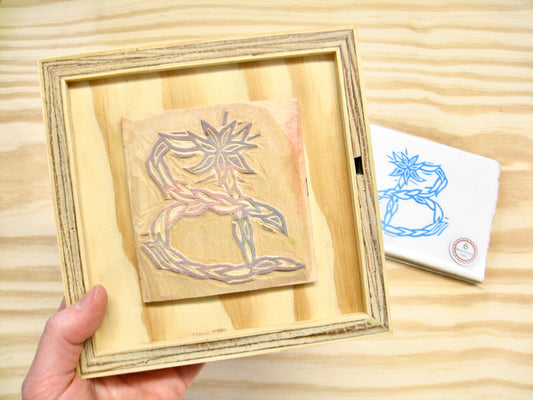 Surround Me FRAMED WOODBLOCK - hand carved original printers block with metal framed print - collector's item