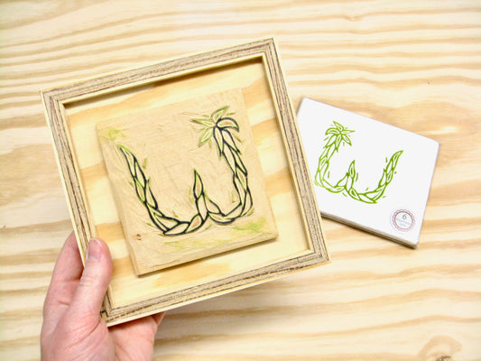 Letter W - hand carved original printers block with 6-pack monogram greeting cards - collector's item