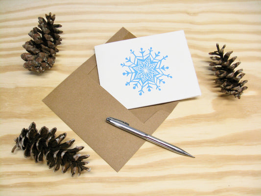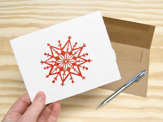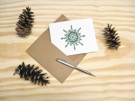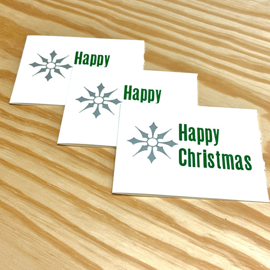 Happy Christmas Silver Metallic Snowflake - single card - wood type letterpress printed