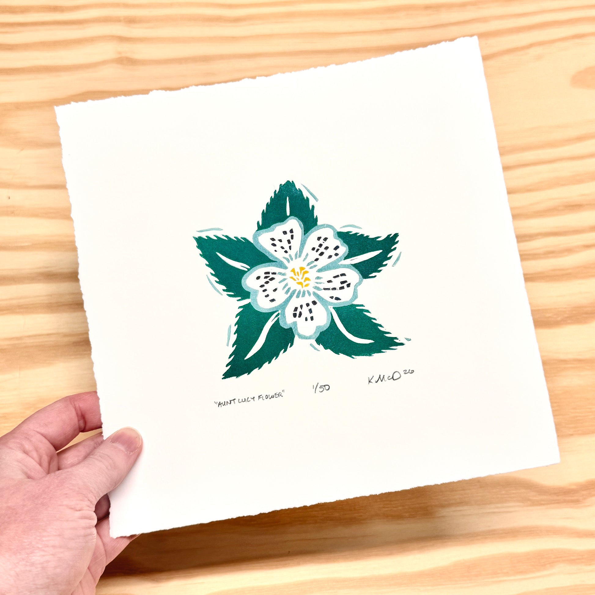 Aunt Lucy Flower - woodblock print (8x8")