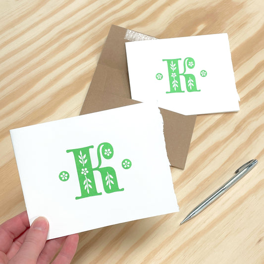 Monogram Leafy Letters 6-pack cards - Choose Your Letter - wood type letterpress printed