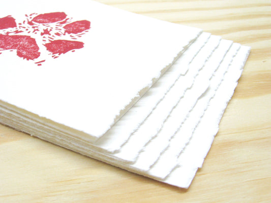Dog Paw Bright Red 6-pack cards - woodblock printed