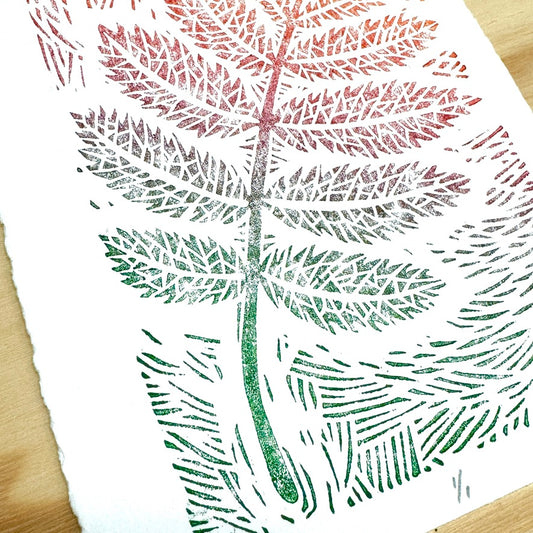 Rowan Leaf GHOST PRINT - woodblock print (5x7")