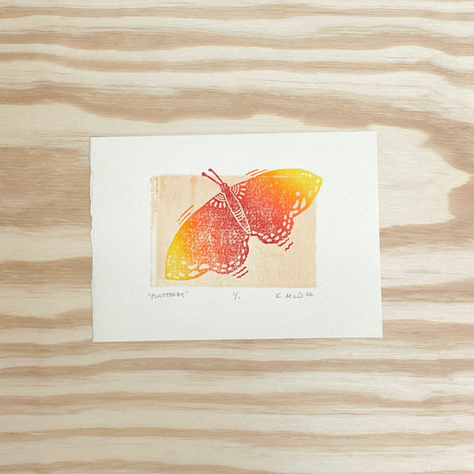 Flutterby Butterfly GHOST PRINT - woodblock print (5x7")