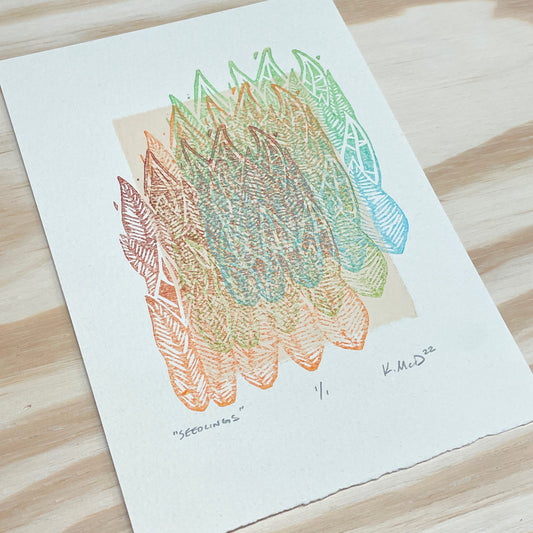 Seedlings GHOST PRINT - woodblock print (5x7")
