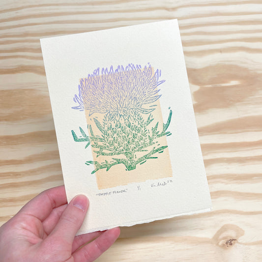 Thistle Flower GHOST PRINT - woodblock print (5x7")