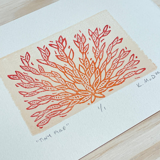 Tiny Fire GHOST PRINT - woodblock print (5x7")