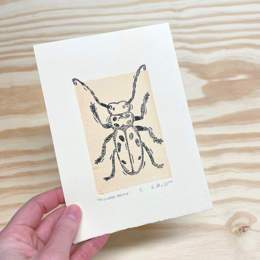 Milkweed Beetle GHOST PRINT - woodblock print (5x7")