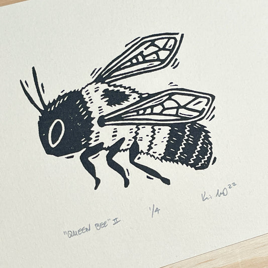Queen Bee black and cream - woodblock print (5x7")
