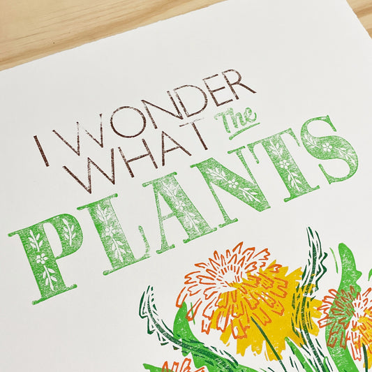 I Wonder What the Plants Think of Us MISPRINT - woodblock and letterpress print (14x18")