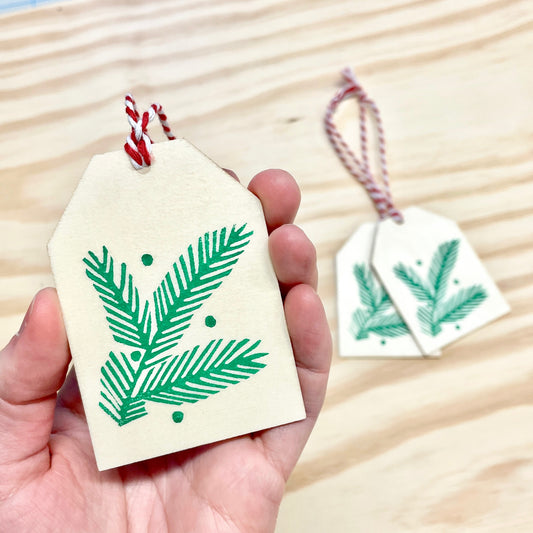 Pine Needles Gift Tags - Wood Ornaments - Green Set of 3
