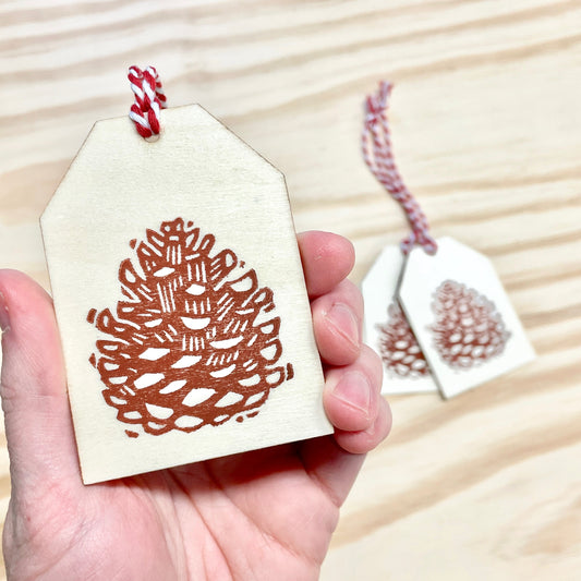 Pinecone Gift Tags - Wood Ornaments - Brown Set of 3