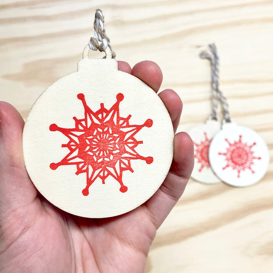 Snowflake Gift Tags - Wood Ornaments - Red Set of 3