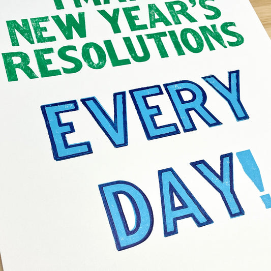 I Make New Year's Resolutions EVERY DAY! Wood Type Letterpress Quote (9x12")