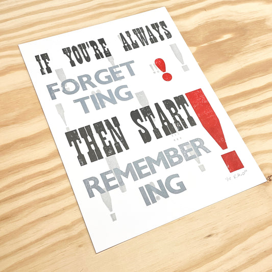 Start Remembering - Wood Type Letterpress Quote (9x12")