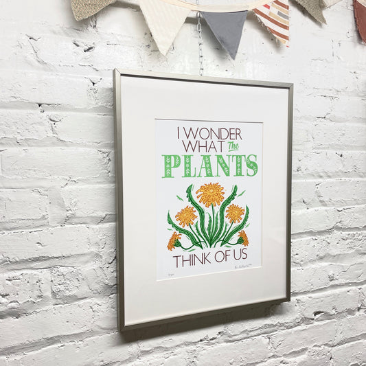 I Wonder What the Plants Think of Us FRAMED - woodblock and letterpress print (16x20")