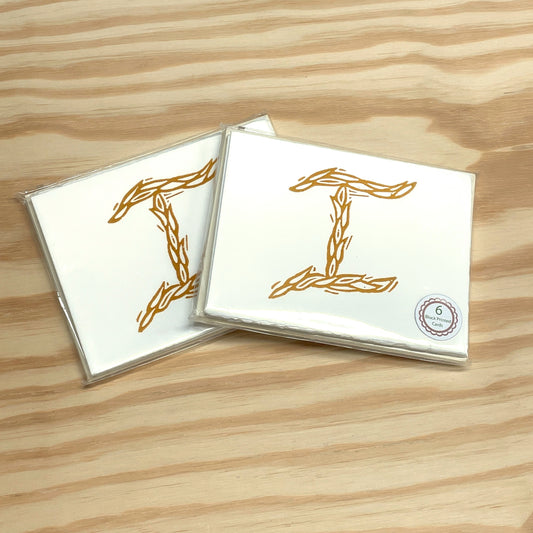 Letter I Monogram 6-pack cards Earthy Orange - woodblock printed DISCONTINUED