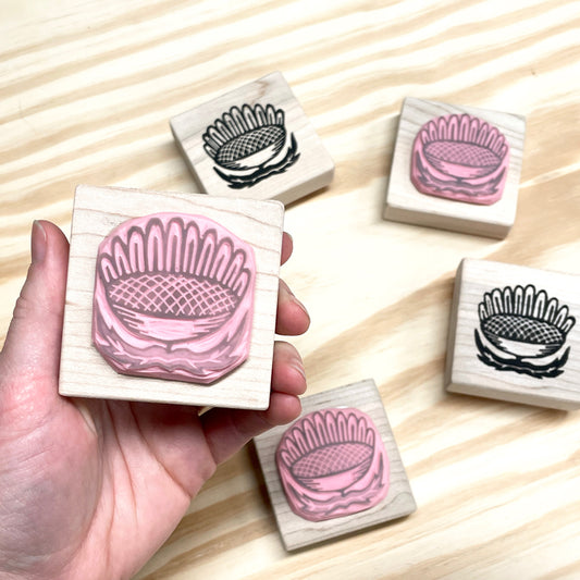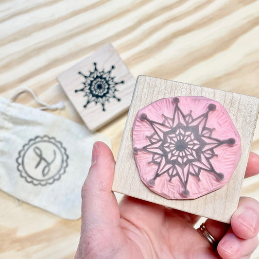 Snowflake Stamp - Handcarved Rubber Stamp - Wood Mounted 2x2"