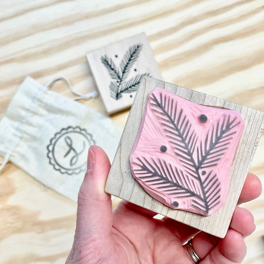 Pine Needles Stamp - Handcarved Rubber Stamp - Wood Mounted 2x2"