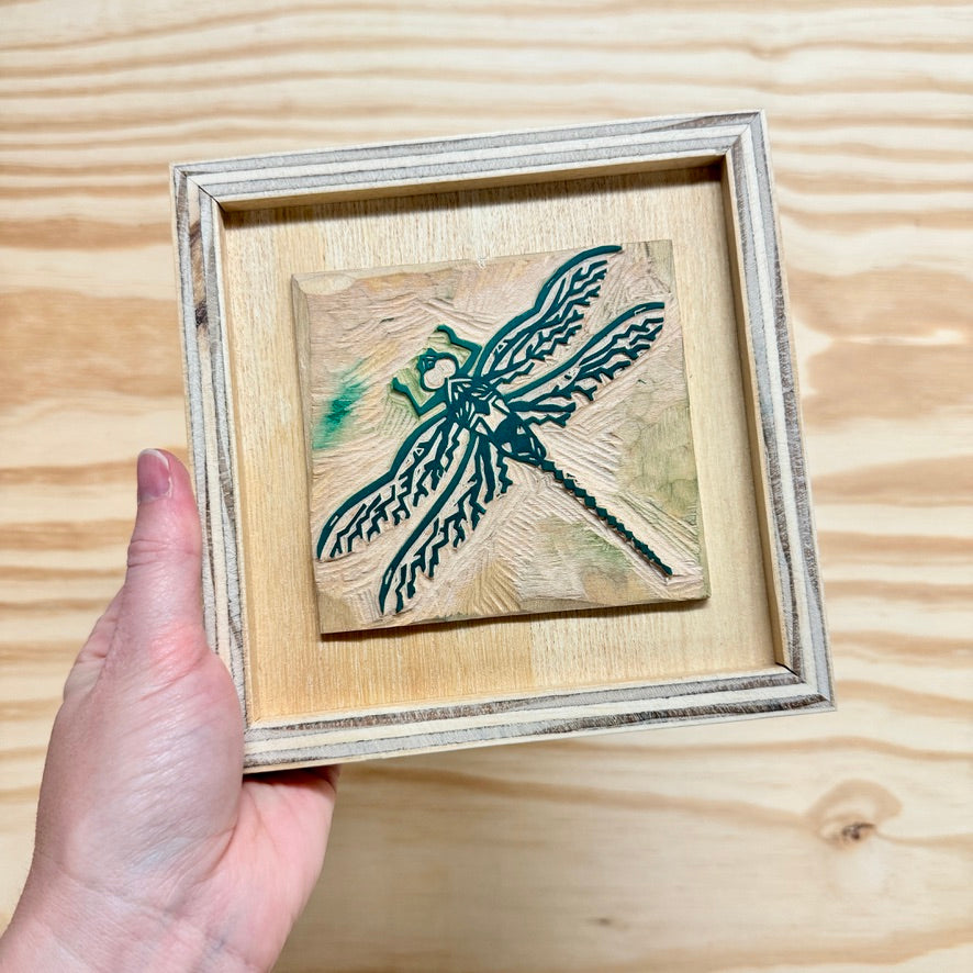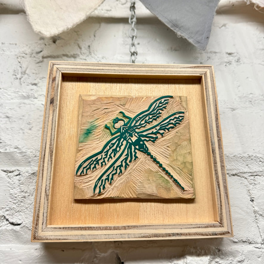 Green Darner Dragonfly - FRAMED WOODBLOCK (6x6")